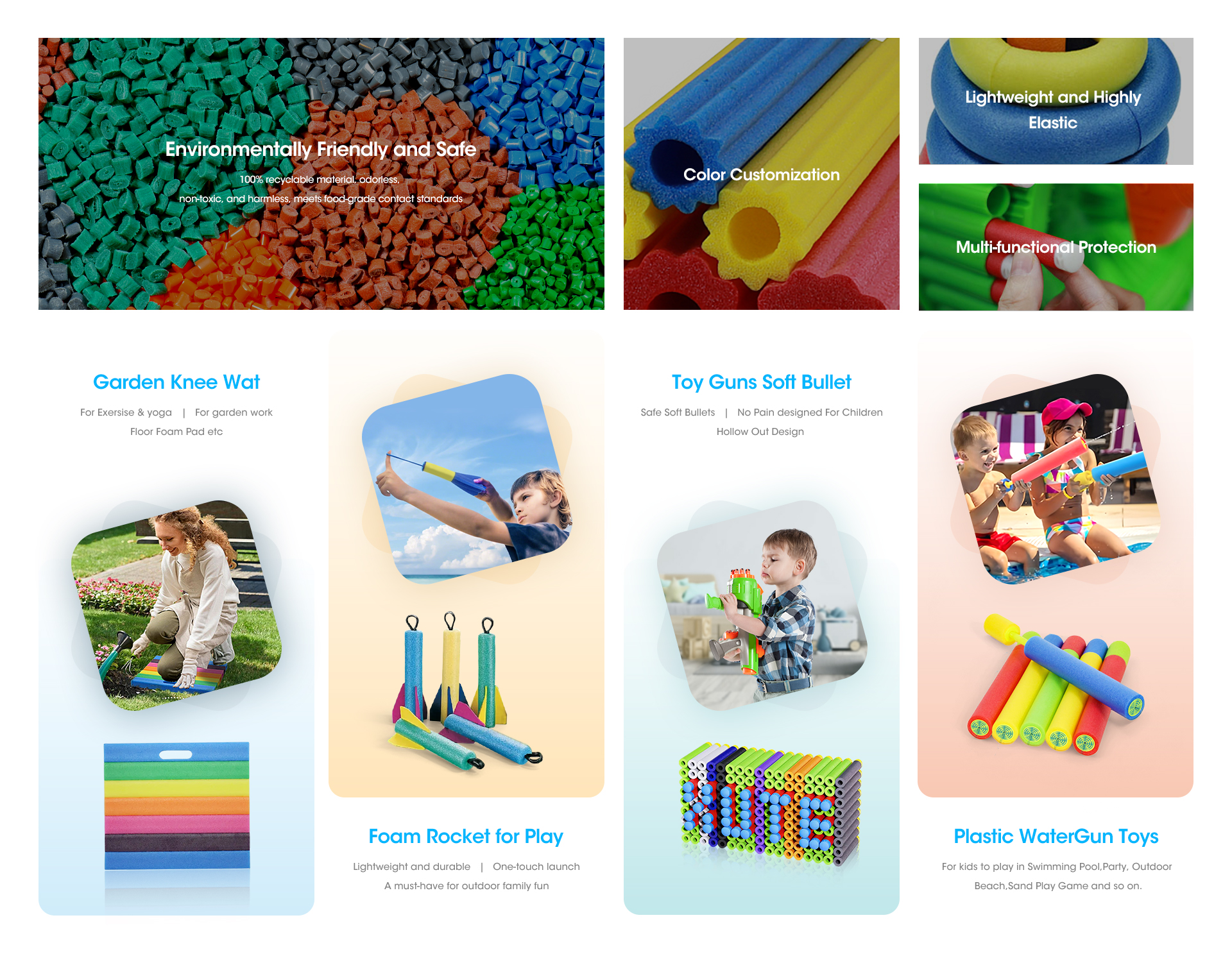 The main products include EPE pipe, bar, profiled material, corner and edge protection, roll, electronic shock-proof packaging material, EVA and other products, which can be used as water-floating and fitness appliance, corner protection, decorative appliance and electronic components.