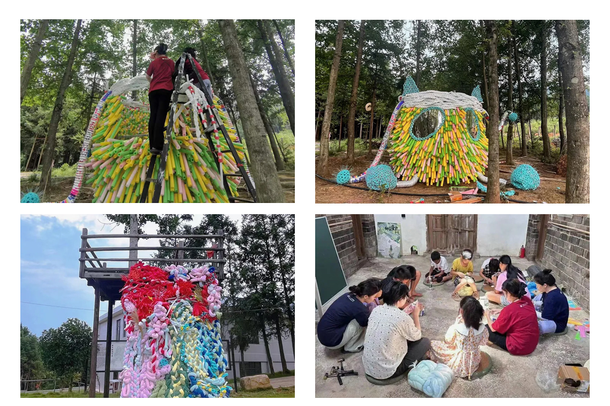 As a manufacturer of pearl cotton, Xute Company highly pays attention to the application of pearl cotton in installation art, and is also enthusiastic about public welfare, actively assuming social responsibility within its capabilities. In August 2023, the China Academy of Fine Arts conducted a summer experimental activity in Dayuan, Yongzhou, Hunan, titled "Gathering with Dayuan Society to Build a Childlike Dream". The activity aims to use art as a way to respond to rural and children through the accompaniment of art, hoping that rural children can draw inspiration from their own growth environment, complete self shaping and self cultivation. As a material sponsor for this event, Xute Company provides all pearl cotton materials for free. This activity uses the concept of "corner creatures" to replace the fear, fear, and confusion in children's hearts. It is hoped that through the installation creation process of corner creatures, children can transform their "corners" into lively, bright, and colorful cute devices, thereby achieving the effect of artistic healing. Art is used as a medium for children to overcome fear, and children's personalities and emotions are projected into artistic creation. The dull and boring pearl cotton tubes themselves have been transformed into vivid artworks through the artistic creations of teachers and children, giving them life and decorating the countryside to heal the soul.